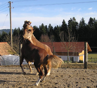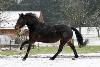 | Januar 2010: Gwyndy tobt auf dem Reitplatz... |