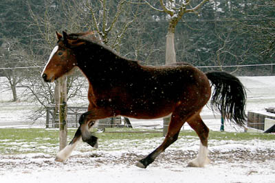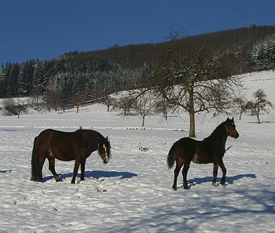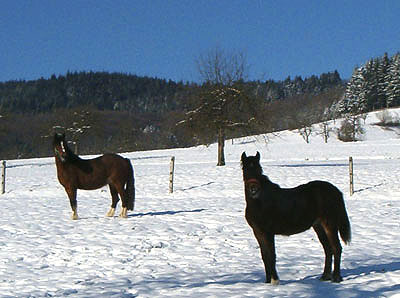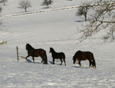 | Endlich Schnee und die Ponys können auf die Weide! |